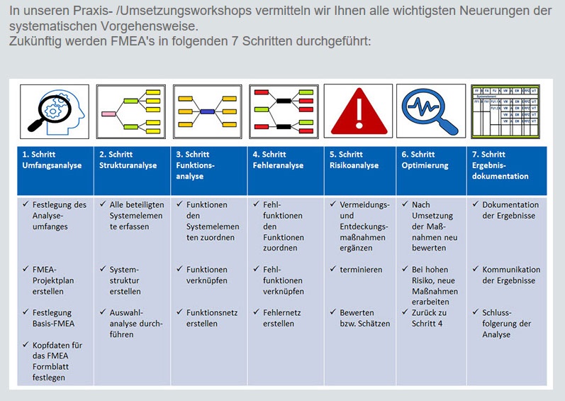Zukünftig werden FMEA’s in folgenden 7 Schritten durchgeführt: